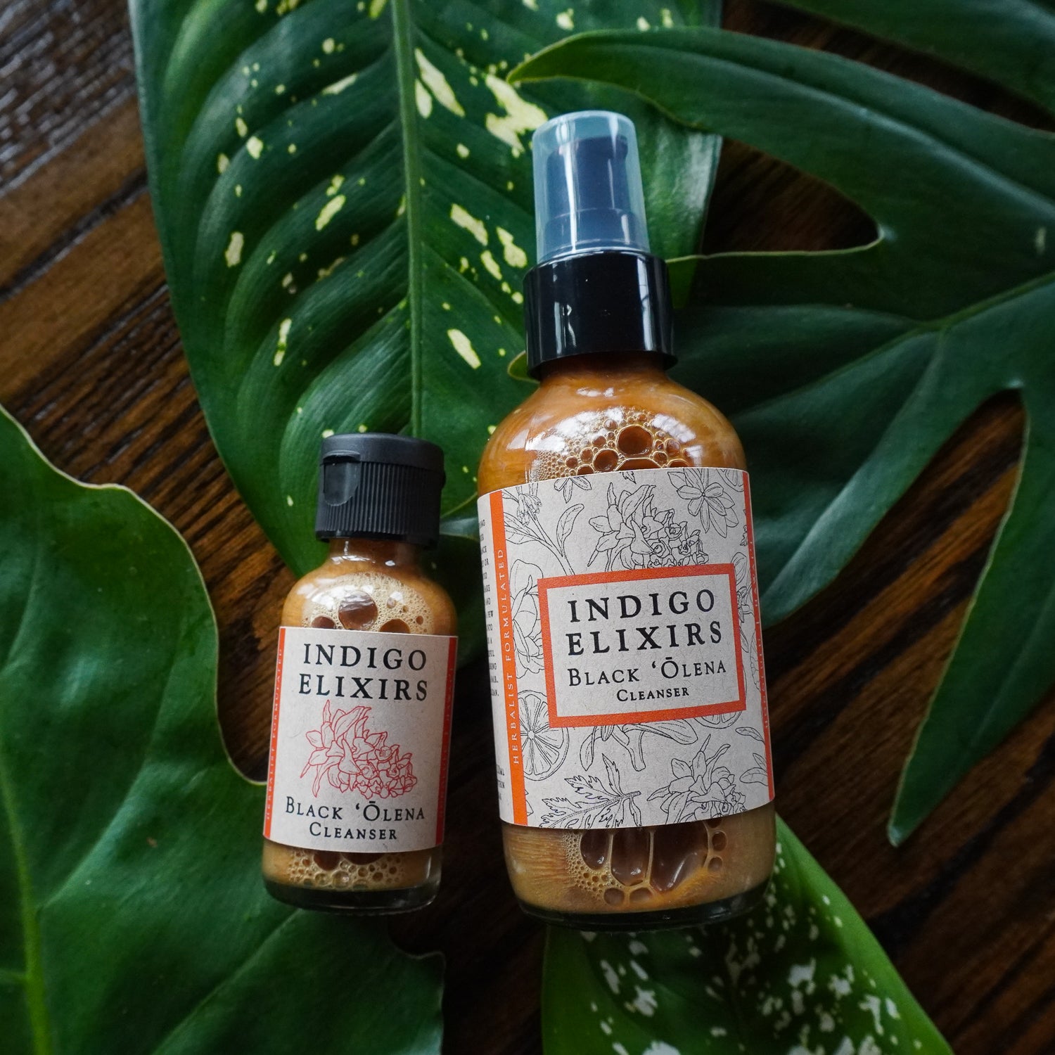 Black 'Olena Cleanser is a gentle wash for all types of skin & hair. This naturally pearlescent liquid will suds up with just a few drops and is especially effective for balancing & restoring health to irritated, oily, dry & mature complexions.